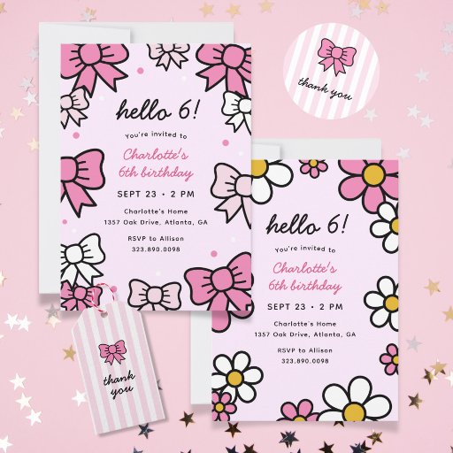 Hello Cutie Cartoon Daisy & Ribbon Pink BirthdayDesigned by Carmia Jordaan
