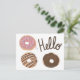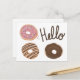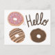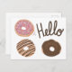 Three colorful donuts create a cheerful, fun "Hello" postcard to send to friends, old and new.