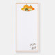 This fridge note pad is shown with a autumn fall pumpkin harvest art print with text Hello Fall.
