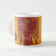 Autumn leaves and acorns surround this cup with Fall colors and a warm "Hello Fall" greeting