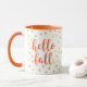 Wake up and enjoy your favorite morning beverage in this mug featuring cute "hello fall" handwritten-style typography and gold faux foil dots.