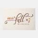 "Fall" in love with this modern and elegant autumn-themed doormat with pretty typography and simple colorful leaves. Personalize the template with your family name or custom text. Shown in a neutral color palette of orange, brown, yellow, and tan on a cream background, but all colors are editable. © Kimbellished, LLC