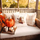 Hello Fall Pumpkin, Leaves and Flowers Throw Pillow