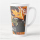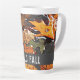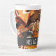 Stylish latte mug features photograph of Autumn colored fallen leaves in a puddle with "Hello Fall" customizable text overlay