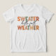 This vibrant fall artwork perfectly captures the cozy essence of the season with its playful typography and warm color palette. The design features the bold phrase "Sweater Weather" in large, blocky letters that alternate in shades of orange, beige, green, and brown, evoking the changing colors of autumn leaves. The phrase "hello fall" is nestled in between, written in a flowing, cursive script that adds a touch of elegance and warmth to the design.