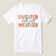 This vibrant fall artwork perfectly captures the cozy essence of the season with its playful typography and warm color palette. The design features the bold phrase "Sweater Weather" in large, blocky letters that alternate in shades of orange, beige, green, and brown, evoking the changing colors of autumn leaves. The phrase "hello fall" is nestled in between, written in a flowing, cursive script that adds a touch of elegance and warmth to the design.