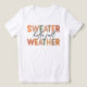 This vibrant fall artwork perfectly captures the cozy essence of the season with its playful typography and warm color palette. The design features the bold phrase "Sweater Weather" in large, blocky letters that alternate in shades of orange, beige, green, and brown, evoking the changing colors of autumn leaves. The phrase "hello fall" is nestled in between, written in a flowing, cursive script that adds a touch of elegance and warmth to the design.