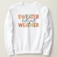 This vibrant fall artwork perfectly captures the cozy essence of the season with its playful typography and warm color palette. The design features the bold phrase "Sweater Weather" in large, blocky letters that alternate in shades of orange, beige, green, and brown, evoking the changing colors of autumn leaves. The phrase "hello fall" is nestled in between, written in a flowing, cursive script that adds a touch of elegance and warmth to the design.