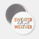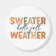 This vibrant fall artwork perfectly captures the cozy essence of the season with its playful typography and warm color palette. The design features the bold phrase "Sweater Weather" in large, blocky letters that alternate in shades of orange, beige, green, and brown, evoking the changing colors of autumn leaves. The phrase "hello fall" is nestled in between, written in a flowing, cursive script that adds a touch of elegance and warmth to the design.