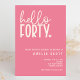 Hello Forty 40th Birthday Modern Pink Minimal Invitation