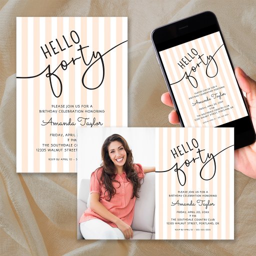 Hello Forty Modern Script Chic 40th Birthday PartyDesigned by Linda Terwee