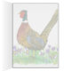 A greeting card decorated with a colorful ring-necked pheasant in a patch of purple pasque flower illustrated with ink and watercolor. Inspired by the state bird and state flower of South Dakota.