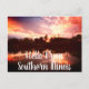 This postcard features a photo of a sunset over a pond and says "Hello From Southern Illinois" in a white font.
