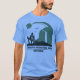 My 11 yo wore adult XL (5’7” 165#). The 8yo is small framed. She wore adult small and tied it in the back. Grandma wore adult large with long sleeve shirt underneath. Tall girl adult medium. Dark haired male adult large. Good quality dark Heather gray, Gildan brand shirt. -it was next up from basic choice and cost about $20 per shirt. Not too thick or thin. Washed and dried well, no major shrinkage. Not see-through. Can wear a bra under it fine. Screen print is just as shown and well done, front and back.