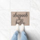 Hello goodbye funny quote saying hipster humor faux linen burlap jute background doormat.