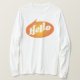 Hello on the front and Goodbye on the back of long sleeve shirt.