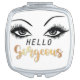 Introducing our Hello Gorgeous Beauty Face Compact Mirror, the perfect accessory for all your beauty needs.