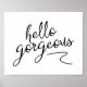 This darling poster will be a perfect compliment to the decor in your home. This design features the quote "hello gorgeous" in a handwritten black font and is accented with a black swish. This would make a great addition to a gallery wall.