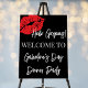 Hello Gorgeous Galentine's Day Party Welcome Sign in Red white and black - Welcome your guests to your Galentine's Day Party in style with this cute, elegant, chic and super stylish custom welcome sign. Featuring white on black script with a cute red kiss mark. The perfect way to decorate your party space and greet your guests at the same time.