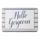 Add a touch of elegance and warmth to your bathroom with our "Hello Gorgeous" Large Bath Mat. This stylish bath mat features a charming striped border in navy blue, beige, and green, framing the inviting phrase "Hello Gorgeous." The soft and absorbent material ensures comfort and safety while stepping out of the shower or bath. Perfect for elevating your bathroom decor with a blend of sophistication and cheerfulness.