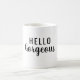 Start every day with a bold compliment! This classic white ceramic mug features a striking, high-contrast black design that reads, "HELLO GORGEOUS." The text creates an elegant blend of strong, clean block lettering and flowing script, resulting in a sophisticated and clean look. It's the perfect gift for your favorite person or a daily reminder that you are absolutely gorgeous.