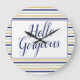 Add a touch of elegance to your space with our Hello Gorgeous Striped Round Wall Clock. Featuring a sophisticated design with stylish navy, gold, and white stripes, and the uplifting message "Hello Gorgeous," this clock is both functional and fashionable. Perfect for any room in your home, it will remind you of your beauty every time you glance at it.