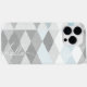 Hello Gray and Aqua Serenity Blue Abstract Art Triangle Pattern Linen Overlay Pattern iPhone Case