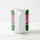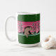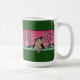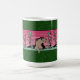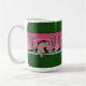 This groundhog is appearing for the first time in February to see if he can see his shadow. A bed full of grass with some plants are visible against a pink and rose colored backround. A ladybug is crawling on a mound of grass. This design was tiled across the mug. A dark green backround was added. This design is featured on assorted styles, and sizes.