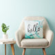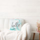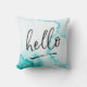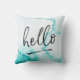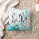 Hello hand-lettered turquoise watercolor pillow looks great in the living room or bedroom and suits a minimalist or Scandinavian decorating style!