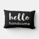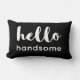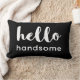 Cute Hello Handsome typography pillow design , great for a fun gift. Black on White