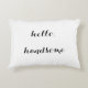 This "Hello, Handsome" decorative pillow is great on its own or paired with The Happy Nest's "Good Morning, Gorgeous" pillow. Shown in white with black lettering, it is customizable to match your décor. Buy it for yourself or your special someone.
