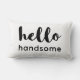 Cute Hello Handsome typography pillow design , great for a fun gift. Reversible Black on White and White on Black Design