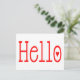 Say Hello with love! This fun sweet and simple card features a Hello greeting in a bold red heart font highlighted against a crisp white background.