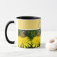 Save the honeybee by letting your Dandelions grow. Photo of a happy honeybee visiting a cheerful bright yellow Dandelion flower in a grassy lawn. With a band of lemon drop yellow to hold your personalized name.