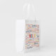 I own a lot of reusable grocery bags, but this one holds its box shape and simply stands up on its own even if there is nothing in it. Its stiffer than your regular reusable bag too, and the material is water resistant. I poured water on the exterior and it didn't penetrate inside to the other side. I'm buying a couple more. Wish I knew how durable these bags were or I would have purchased a few more with my initial order. I also like how it folds and buttons up when not in use, making it easy to put into a handbag or luggage. I haven't used this bag yet, as I purchased it for travel use, like when you're at the airport and need to small sturdy bag to place any airport purchases in, like food, souvenirs etc. I can tell you when you first see this bag, it looks very cheap, but after closer inspection of the material and the seams its a very sturdy reusable bag. I tested it out by putting some really heavy objects inside and I could not observe any stress to the bag at all. Another thing I like about it, is the fact the medium size that this is makes it easy to just carry it in your hand without the bottom of the bag scraping the ground, like most other bags do when you're short. That alone, deserves 5 stars. I just wish there were more colors to choose from! The PDX Airport Carpet printing looks just like the photo, and using this bag during travel might be a conversation piece when/if a native from Oregon happens to see it.