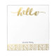 These notepads feature a "faux" gold foil design. They make a perfect gift or addition to your desk. Customize the notepad with one line of text using the template form.