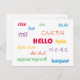 Hello in Many Languages Pink Blue Green Yellow Postcard