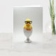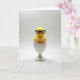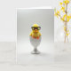 Designed with a soft, photo-style look, this Easter card features a tiny newly hatched chick in fluffy yellow, posed in a white egg cup against a plain white background 🌷. The chick peeks out from a cracked eggshell, and its oversized round black glasses give it a curious, almost bashful look, like it’s sharing a private joke with someone close 🐰. Gentle, even lighting shows the downy texture and the smooth shine of the ceramic without any harsh glare. The bright yellow feathers stand out strongly against the white setting, while the black glasses add a crisp contrast. A small orange beak and hints of webbed feet add warm accents that feel friendly and inviting. The greeting text sits near the top in a soft pastel tone, with a smaller line beneath it in light gray for balance. A faint shadow rests under the egg cup, and the cracked shell edge forms a jagged ring around the chick.