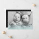 This modern minimalist 'Hello, Little Darlings' twins, triplets or multiple boy birth announcement card features a full bleed photo, light pastel aqua blue gradient overlay and simple black calligraphy script typography layout.