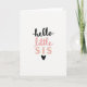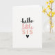 This card shows the words “hello little SIS” stacked down the center on a white background, with a small black heart nearby ❤️. “hello” is written in black with smooth, flowing letters at the top. Under it, “little” appears in a soft pink, in a casual handwritten look that feels gentle and sweet. “SIS” sits below in uppercase letters in a muted blush pink, making it feel steady and proud. The simple layout and lots of white space keep your attention on the message and make it easy to read. It feels meaningful to give because it’s a small, direct way to say you care and you’re happy to have her in your life 🥰.
