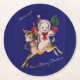 Hello! Merry Christmas snowman on reindeer Round Paper Coaster