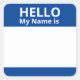 These standard, square blue-and-white name tag sticker labels include space to write the guests' names at your event, whether it be an office party, a business meeting, a school event, a class reunion, or any party or occasion. Keep or change the "Hello My Name is" text using the easy templates.