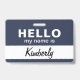 Introduce your team or event attendees with this welcoming and straightforward badge design. The layout features a classic two-tone, horizontal split with a clean upper section and a contrasting lower section that highlights a name in a stylish script font. It's a friendly and timeless design that makes introductions easy and memorable.