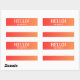 Simple black and white name sticker featuring casual script that says "hello! MY NAME IS." Use it for social gatherings and parties.