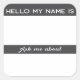 Hello My Name Is / Ask Me About name tag sticker with space to write in your name and something you know about. Great icebreaker for party, meeting, event. Fun fonts in white on a dark gray/off black background so the writing will stand out.