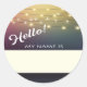 Hello My Name Is name tag with a party string lights motif. Guests can write their name in the space provided for a festive introduction.