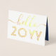 Hello New Year! Send family and friends joyful upbeat wishes for the year to come with elegant real foil folded holiday cards. All wording on this template is simple to personalize. Colors and fonts are also easy to change with the Zazzle design tool. The front side of this card is printed with real metallic gold foil lettering. The navy blue, white and gold design also features cascading faux foil confetti dots, modern handwritten style script calligraphy, chic minimalist vintage typography, and a personalized message. Please note that interior is printed color, not metallic foil. Family and friends will love displaying this elegant and stylish customized card. Happy New Year!