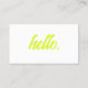 Hello Neon Chartreuse Yellow Black White Modern Business Card