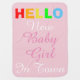 Cute new baby announcement blanket with the wording, Hello New Baby Girl in Town. Written in red, orange, yellow, green, blue, pink and white text colors on a light pink background. Back of blanket is light pink. Sweet newborn blanket. Nice baby shower or hospital gift. Original Quote Design © 2017 TamiraZDesigns