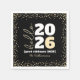 “Hello 2026. Good riddance 2025.” Sometimes, the new year can’t come quickly enough. And this is one of those years. A playful visual of modern, bold, white, graphic block typography and faux gold glitter elegant script calligraphy and dots over black, help you usher in the New Year. Feel the warmth and joy of the holiday season whenever you use this stylish and modern personalized name and year party paper napkin. Choose from cocktail, luncheon and dinner sizes. Matching and coordinating cards, envelopes, stickers, giftwrap, plates and other products are also available. Makes a fun and festive addition to your party!